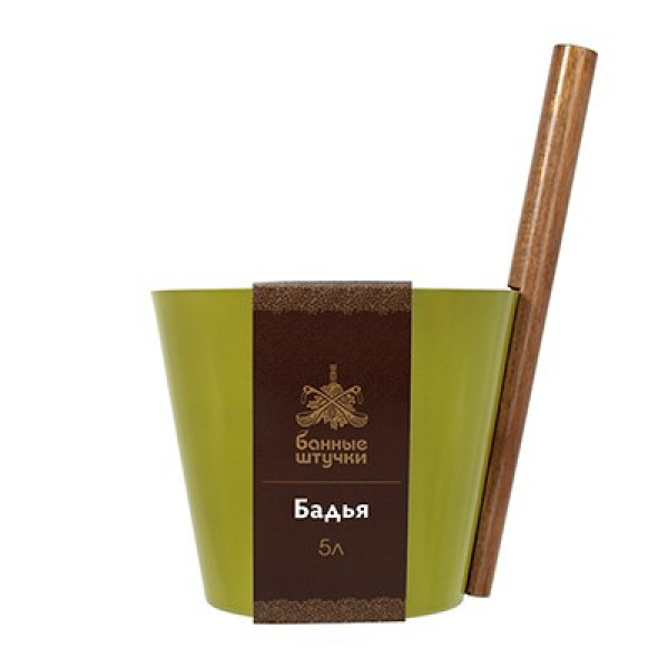 Бадья из алюминия с деревянной ручкой 5 литров, оливковая.