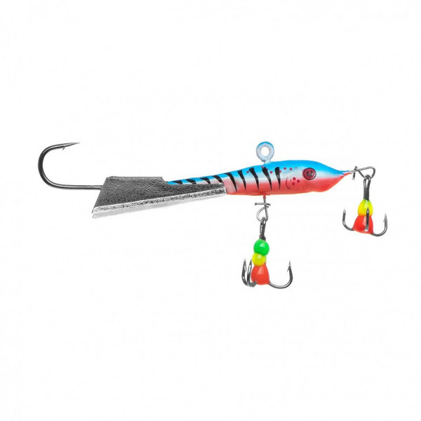В хвосте балансира впаян одинарный крючок. Снизу на кольце крепится крючок-тройник, на который обычно и зацепляется клюнувшая рыба. На хвосте имеется стабилизатор из пластика. При движениях вверх-вниз приманка уходит то в одну, то в другую сторону, тем самым привлекая внимание хищной рыбы. Балансир покрыт специальной стойкой краской.