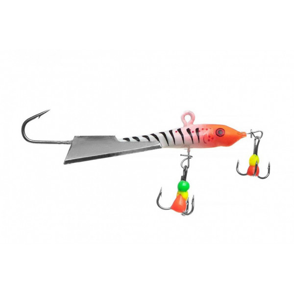 В хвосте балансира впаян одинарный крючок. Снизу на кольце крепится крючок-тройник, на который обычно и зацепляется клюнувшая рыба. На хвосте имеется стабилизатор из пластика. При движениях вверх-вниз приманка уходит то в одну, то в другую сторону, тем самым привлекая внимание хищной рыбы. Балансир покрыт специальной стойкой краской.