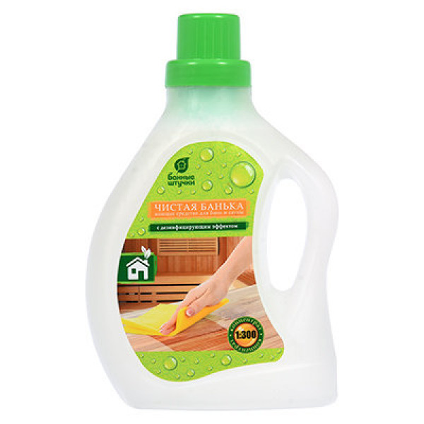 Описание: Концентрат "чистая банька" легко растворяется в воде в пропорции 1:300. Предназначен для мытья и обработки всех поверхностей бани и сауны (деревянных, кафельных, стеклянных и пластиковых). Не оставляет следов и разводов, с легким ароматом чистоты. Отличительные особенности обладает стойким противогрибковым и антимикробным действием. Не содержит хлора, фосфатов, кислот, щелочей и других токсичных веществ. Биоразлагаемо.