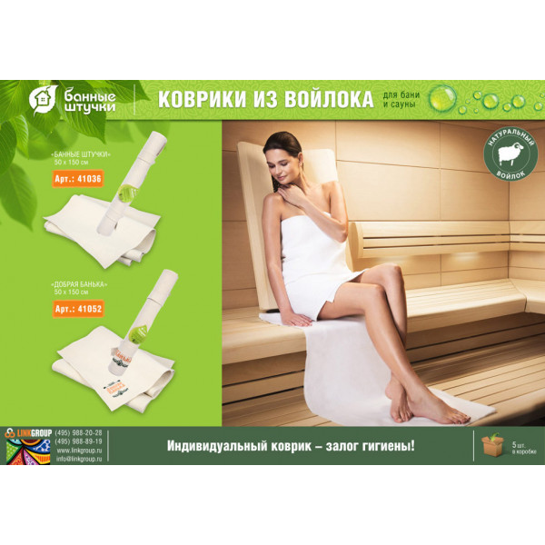 Коврик для бани Банные Штучки Большой Добрая банька войлок 50х150 см 41052
