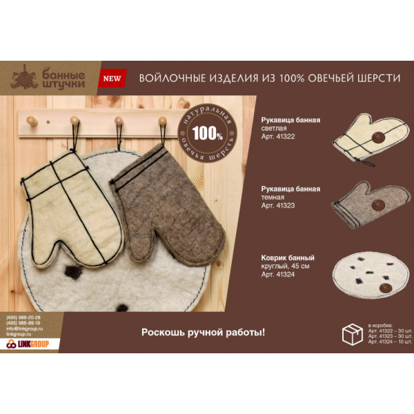 Коврик для бани и сауны Банные Штучки шерсть 41324