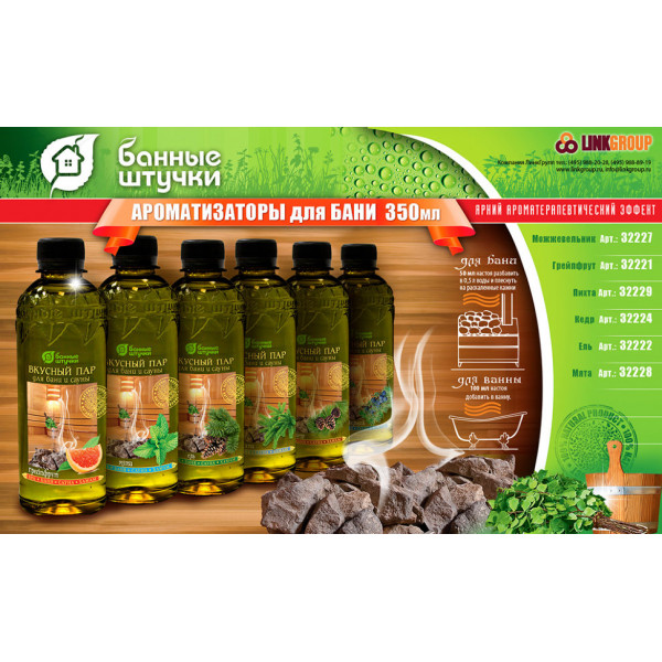 Способ применения: Взболтать, добавить 15- 20 мл на ковш воды, полить стены и полки в бане, сауне или поддать на камни, также можно добавить 30 мл в наполненную ванну. Не является лекарственным средством.