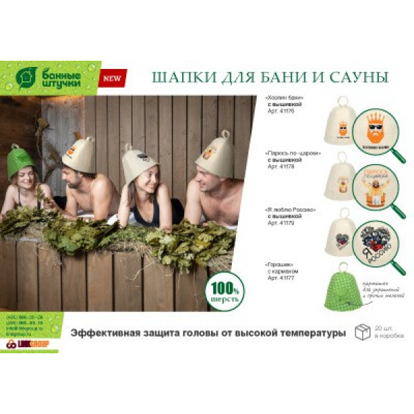 Шапка из войлока убережет Вашу голову от повышенной температуры, создавая свой микроклимат. Разнообразие вышивок позволит угодить даже очень требовательным запросам поклонников бани или сауны. Шапка из войлока долговечна, прекрасно сохраняет форму, устойчива к стирке и деформации.