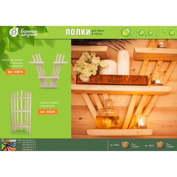 Полка угловая трехъярусная Банные Штучки липа 3325