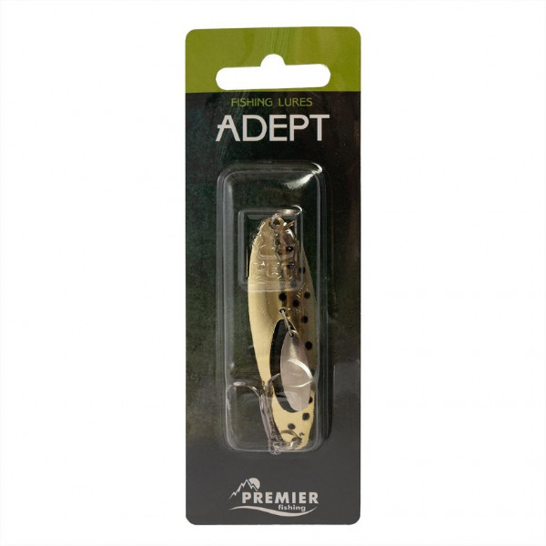 Блесна колеб. Adept C3, 17гр Premier (PR-AD-SPNH52-1-C3) Колеблющаяся блесна Adept выполнена из листовой латуни. Благодаря своей форме позволяет провести её на любой скорости в водоёмах как с течением, так и без. В теле лепестка имеется вырез овальной формы в котором размещен дополнительный лепесток, который своей игрой провоцирует малоактивного хищника. Вес 17 гр.
