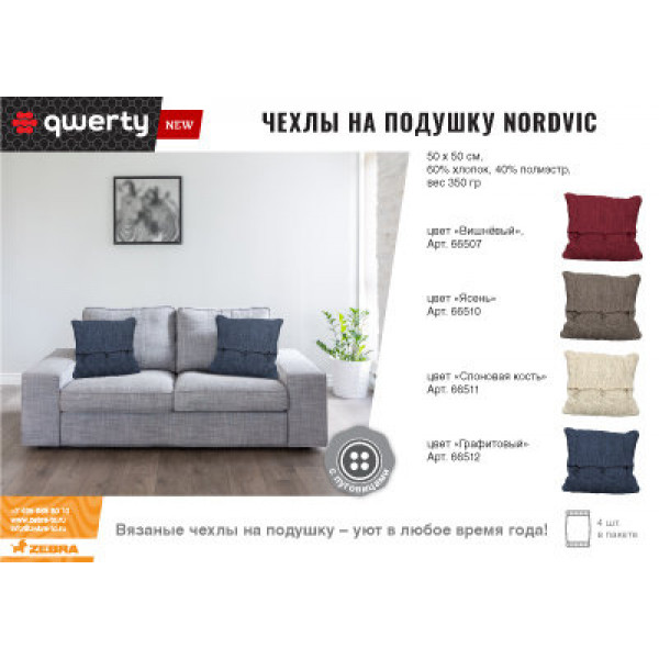 Чехол на подушку вязаный с пуговицами Qwerty Nordvic Слоновая Кость 66511