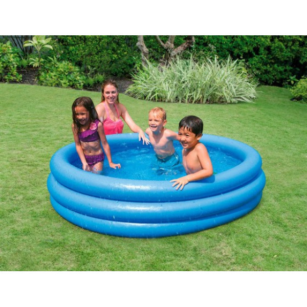 Круглый детский надувной бассейн приятного синего цвета. Изготовлен из плотного непрозрачного винила толщиной 0,23 мм (стенки) и 0,18 мм (дно). Поверхность дна имеет противоскользящее покрытие. Стенки бассейна формируют три воздушные камеры. В набор входит ремкомплект. Предназначен для детей от 2 лет.