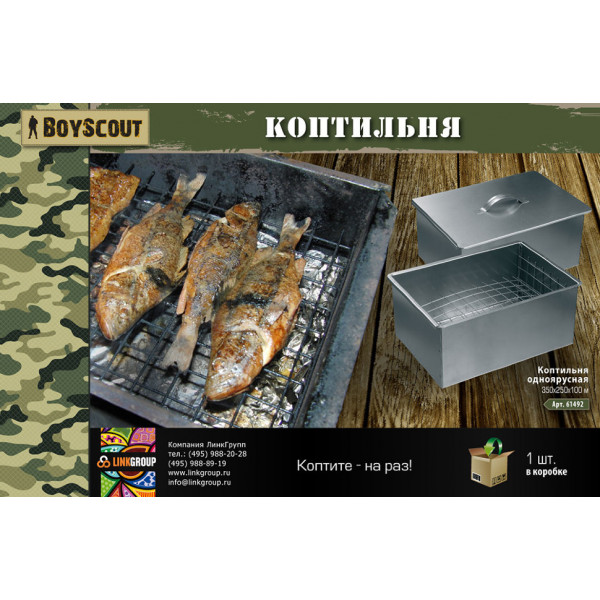 Коптильня 350х250х100 мм, одноярусная, в коробке. Материал: высококачественная углеродистая сталь.