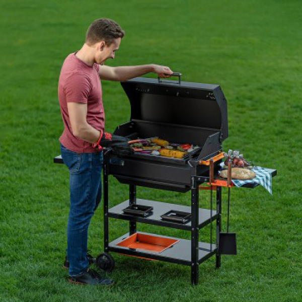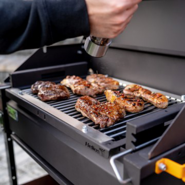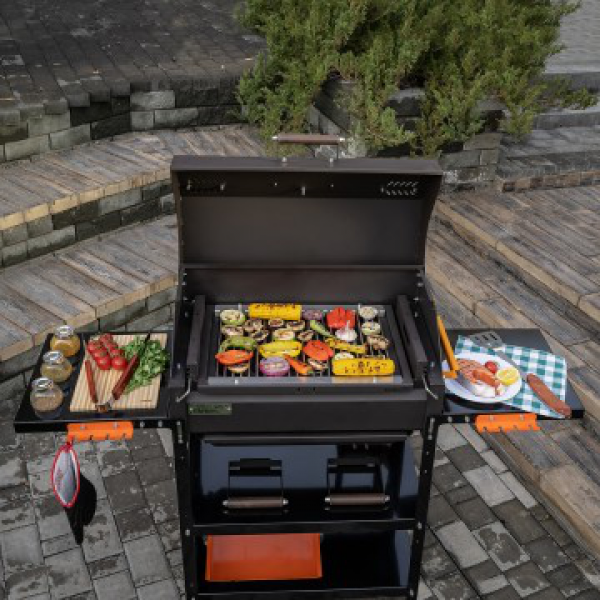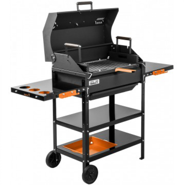 Мангал Helios SMART-600 Люкс - максимальная комплектация линейки SMART-600. Мангал оснащен всем необходимым для комфортного приготовления блюд на открытом огне: жаровней с перфорированным дном и зольниками, 2-мя полками (сплошной и с лотком), колесами, боковыми столиками с подстаканниками, крышкой гриль, держателем для инструментов, подъемным угольным лифтом для управления жаром, решеткой гриль.