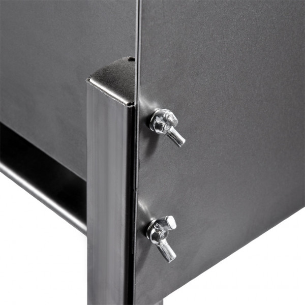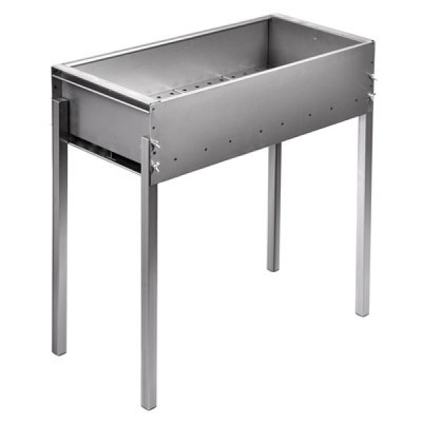 Легкий в использовании мангал «Титан», имеет разборную конструкцию для удобства хранения и транспортировки. Колосниковое дно сделано из 8 элементов с дополнительными ребрами жесткости, что обеспечивает высокую устойчивость мангала к тепловой деформации. Для регулировки температуры горения предусмотрены поддувала, регулировка поступления воздуха осуществляется с помощью 2 заслонок. Также имеется съемный зольник для удобного сбора золы. Толщина топки 1,2 мм.