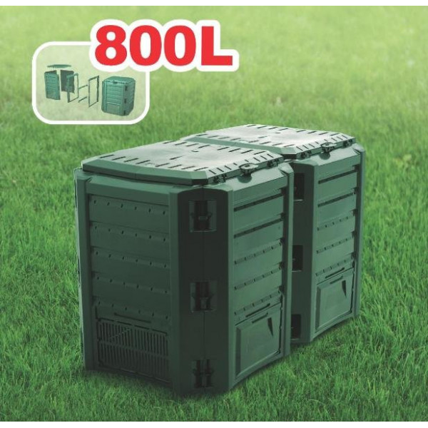 Небольшие отверстия в стенках компостера облегчают поток воздуха, а закрытая форма предотвращает доступ животных к отходам . Откидная крышка на нижней части компостера позволяет легко доставать готовый компост.