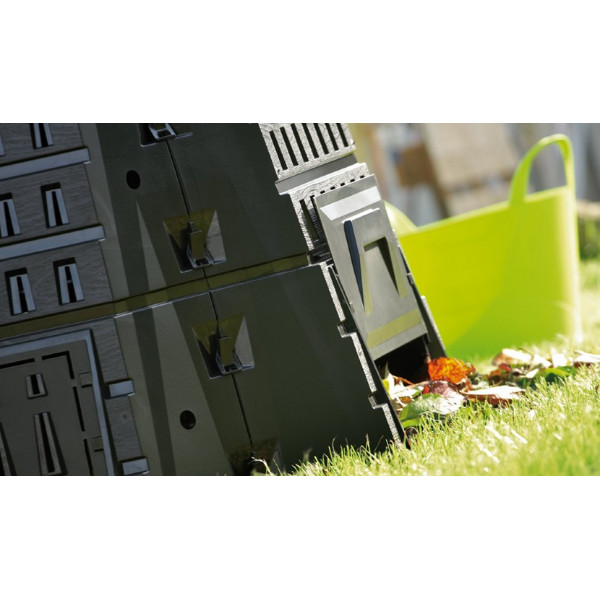 Небольшие отверстия в стенках компостера облегчают поток воздуха, а закрытая форма предотвращает доступ животных к отходам . Откидная крышка на нижней части компостера позволяет легко доставать готовый компост.