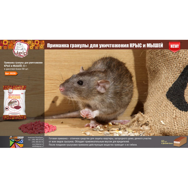 Приманка гранулы Help для уничтожения крыс и мышей 50 г 80291