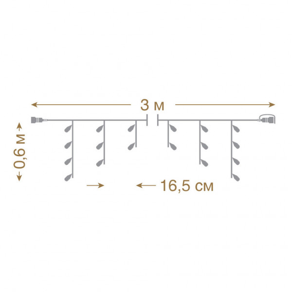 Размер гирлянды 3х0,6 м, количество светодиодов 72, количество нитей 18. Цвет свечения холодный, режим свечения статичный, цвет провода прозрачный. Степень защиты IP 44. Мощность 1,44 W. Температурный диапазон использования от -30 до +50 °С. Есть возможность последовательного соединения до 1 500 LED. Трансформатор не входит в комплект! Приобретается отдельно. Срок службы 25 000 часов.