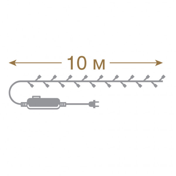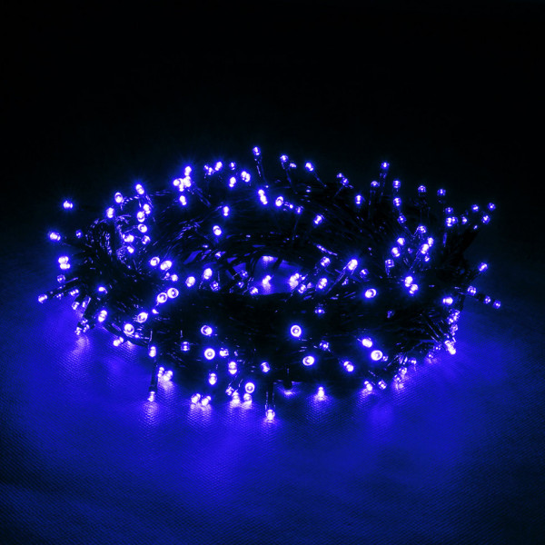 Длина гирлянды 10 м, количество светодиодов 100. Цвет свечения синий, цвет провода зеленый. Степень защиты IP 20. Мощность 6 W. Гирлянда имеет контроллер (8 режимов работы). Использовать при комнатной температуре. Срок службы 25 000 часов.