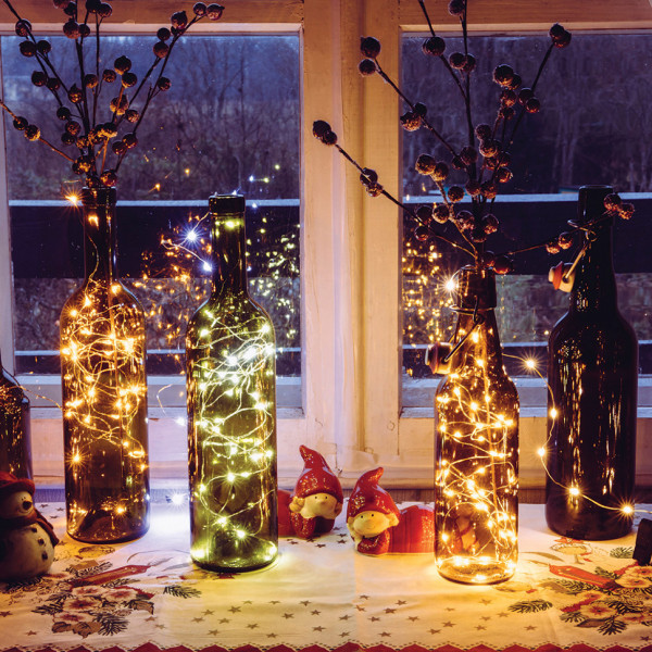 Длина гирлянды 1 м. Кол-во светодиодов 10. Цвет свечения теплый. Цвет провода серебристый. Степень защиты IP20. Мощность 0,23Вт. Срок службы 25000 часов. Питание гирлянды - батарейки типа LR44*3шт.(входят в комплект). Включаются при помощи тумблера on/off. Использовать при комнатной температуре.