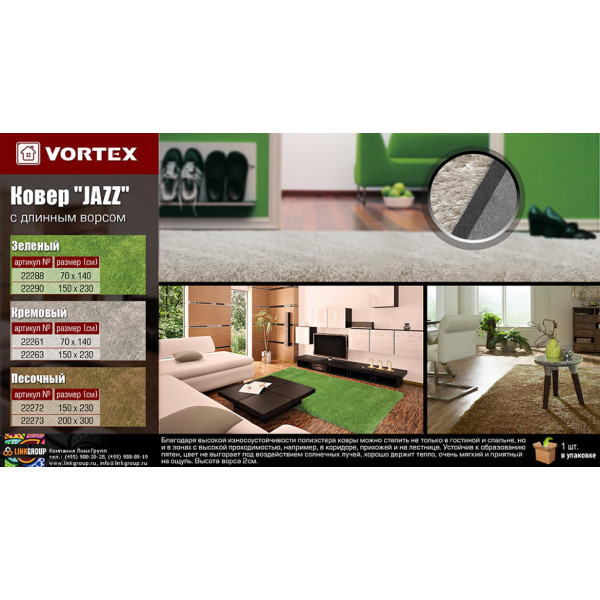 Благодаря высокой износоустойчивости полиэстера ковер можно стелить не только в гостиной и спальне, но и в зонах с высокой проходимостью, например, в коридоре, прихожей и на лестнице. Устойчив к образованию пятен, цвет не выгорает под воздействием солнечных лучей. Хорошо держит тепло, очень мягкий и приятный на ощупь. Высота ворса 2,5см. Плотность ворса 1400г/м2. Предназначено для использования внутри помещения.