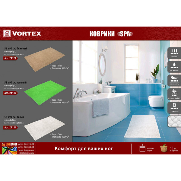 Коврик для ванной Vortex Spa 58х90 см бежевый 24129