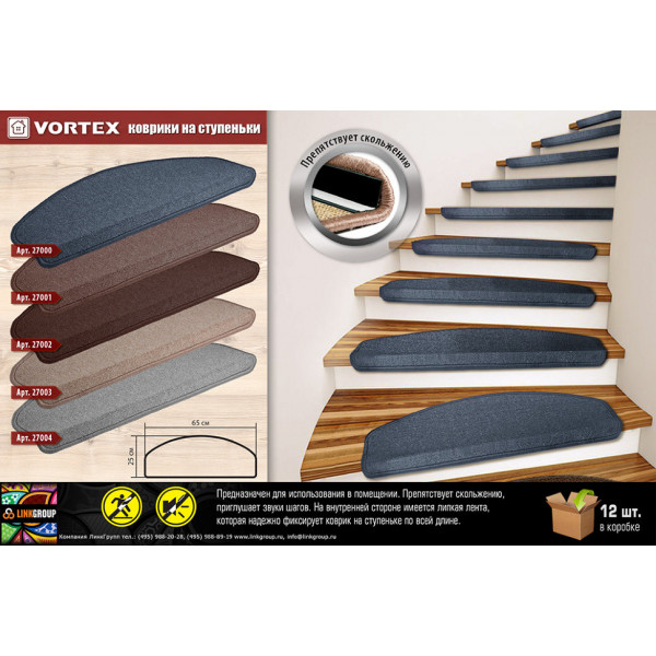 Коврик фиксируется на ступени при помощи липкой ленты, усиленный уголок.