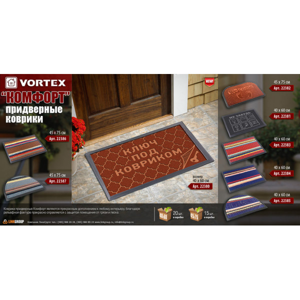 Коврик придверный Vortex Comfort Welcome полукруг 40х60 см синий 22385