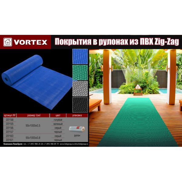 Противоскользящий коврик ПВХ Vortex Zig-Zag 8 мм 0,9х10 м черный 22161