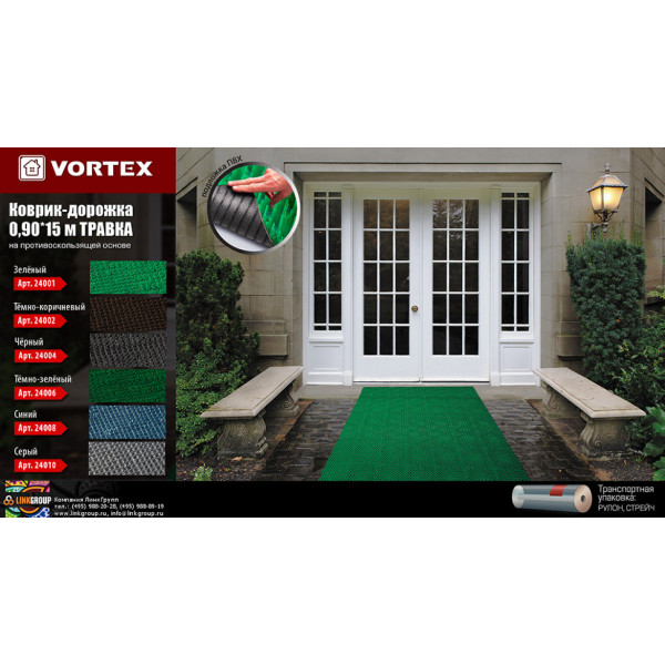 Щетинистое покрытие противоскользящее Vortex Травка рулон 0,90*15 м зеленый 24001