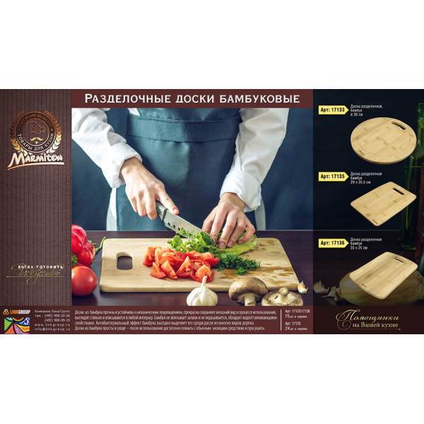 Предназначение: Доска подходит для разделки и измельчения всех видов продуктов. Доски из бамбука отличаются высокой прочностью и износоустойчивостью, устойчивостью к механическим воздействиям и окрашиванию.
