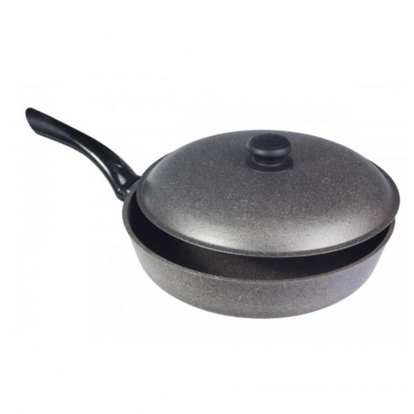 Сковорода антипригарная с крышкой Силумин Гранит 2,7л d280 (ГС28тpк)