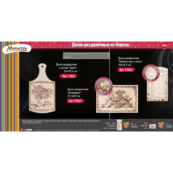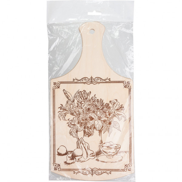 Описание: Лицевая сторона доски (с рисунком) является декоративной, разделывать продукты только на стороне, не имеющей рисунка. Толщина 0,8 см.