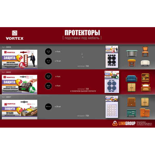 Для бережного и легкого передвижения тяжелой крупногабаритной мебели, защищают от царапин и берегут пол. В комплект входят круглые протекторы диаметром 25мм-8шт. и 38мм-4шт.
