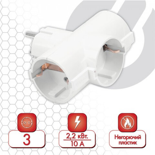 Электрический тройник SONNEN U-030G предназначен для подключения одновременно трех электрических приборов с заземлением к одной розетке электрической сети переменного тока.