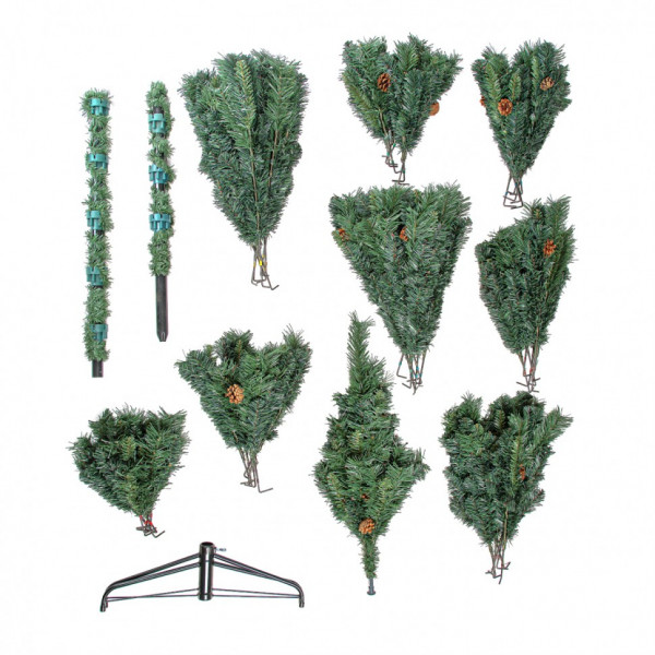 Цвет зелёный, количество веток 1048, декор: шишки, крепление веток: на крючках.