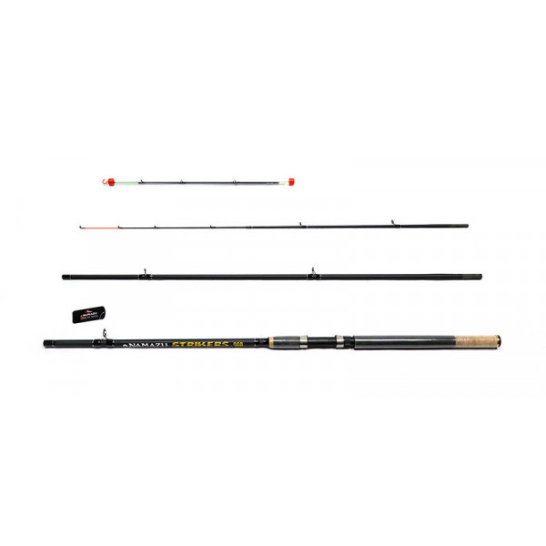 STRIKERS композитное фидерное удилище. Колена соединяются "комель в хлыст". Кольца SiC, установленные на ножках с тремя точками крепления, есть возможность применения плетёных шнуров. В комплекте 3 стеклопластиковых хлыстика различной жесткости. Классический катушкодержатель с нижней гайкой, рукоятка прямая, комбинированная (пробка + EVA). Поставляется в нейлоновом чехле.