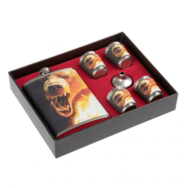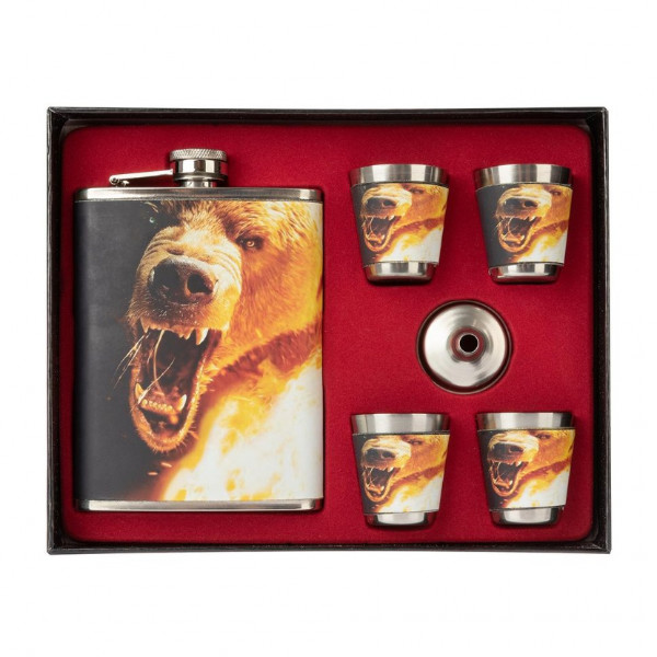 Фляжка и набор стопок Helios Настоящему мужику Медведь 240 мл HS-N-RM-B-A21
