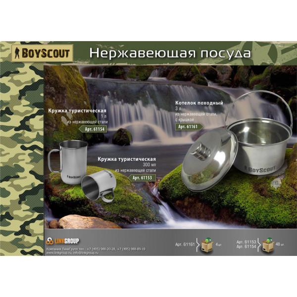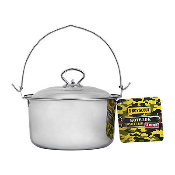 Котелок походный с крышкой Boyscout сталь 3л 61161