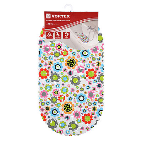 Коврик на присосках овальной формы. Для использования в душевой кабине или ванной комнате против скольжения.