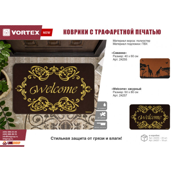 Очищает обувь от грязи и задерживает влагу при входе в помещение, не скользит. Способ нанесения рисунка трафаретная печать.