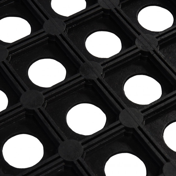 Структура коврика задерживает снег, крупные частицы грязи, препятствует скольжению. Устойчив к антигололедным реагентам и моющим средствам.