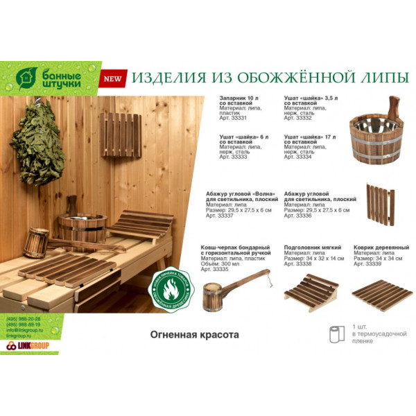 Описание: С древних времен посуда из липы пользовалась особой популярностью, благодаря ее уникальным свойствам. Ковш для бани, выполненный из липы, никогда не обожжет руки, стоек к влаге и при использовании наполняет баню тонким характерным ароматом. В кружках из липы напитки дольше останутся прохладными и приобретут тонкий и целебный аромат. Кружки и ковши из липы – обязательный аксессуар для бани и сауны.