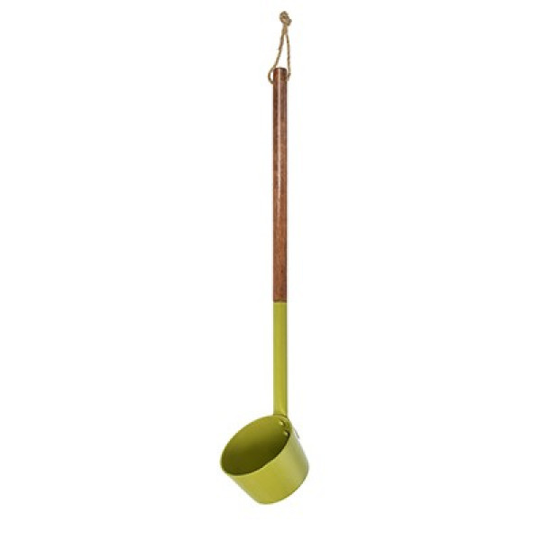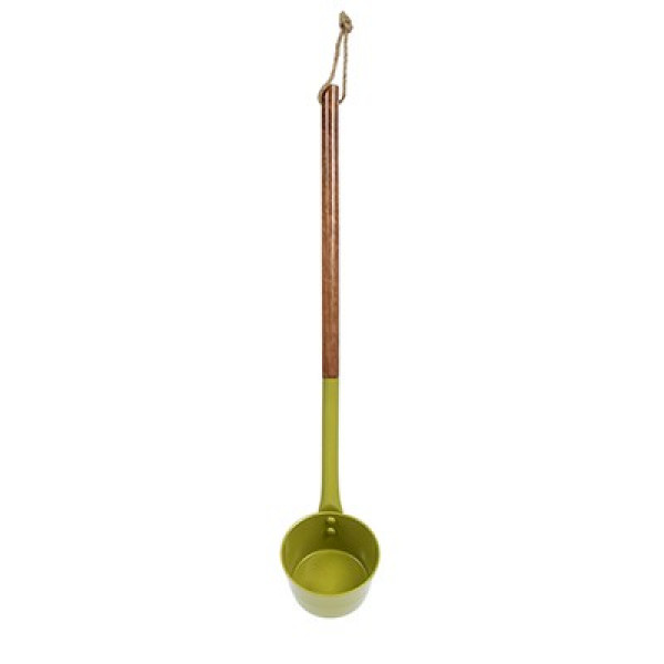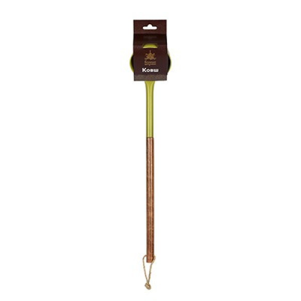 Ковш для бани алюминиевый, с деревянной ручкой, длина 47 см, объем 200 мл, оливковый.