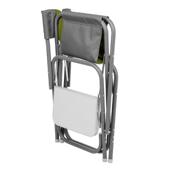 Удобное кресло увеличенного размера с откидывающим столиком для комфортного отдыха на природе. Надежная устойчивая конструкция из алюминиевой трубы. Мягкие съемные подлокотники.