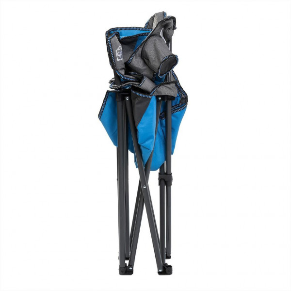 Максимально удобное складное кресло с широкими тканевыми подлокотниками станет незаменимым предметом на отдыхе, на природе, рыбалке, даче. В подлокотнике с одной стороны имеются тканевый подстаканник и навесной карман с двумя отделениями. Спинка усилена вспененным материалом.