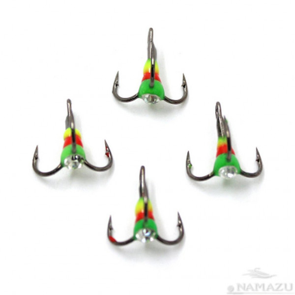 Крючок рыболовный Namazu, тройник, 5 шт. в упаковке. Номер 10 по международной классификации, код цвета: GRO. Рекомендуемый сезон использования: зима.