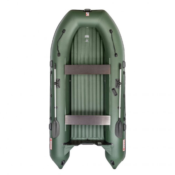 • Складные алюминиевые весла с гребками из прочного пластика с дополнительным фиксатором, позволяющим установить весло на уключину. На бортах лодки установлены держатели весла, которые надежно фиксируют весла во время движения.