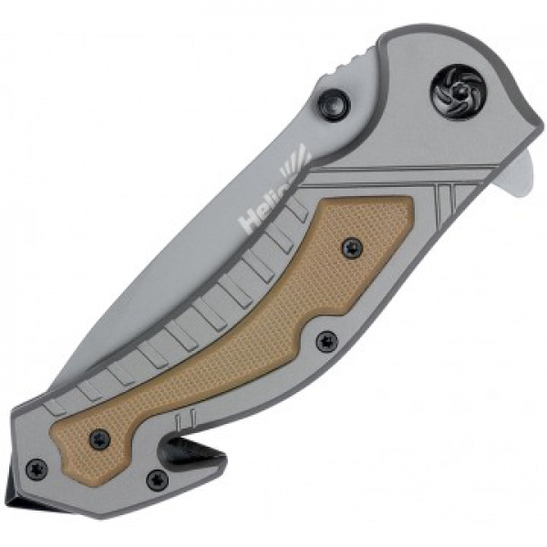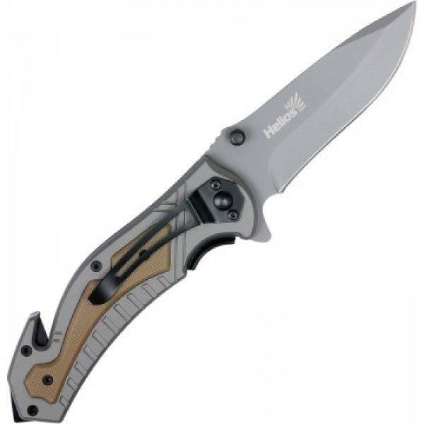 Серия складных ножей Helios, это удобные и прочные клинки. Ножи Helios предназначены для использования в повседневной жизни EDC (Every Day Carry), но при необходимости, ножи не подведут Вас и в непредсказуемых ситуациях. В серии использован различный дизайн окраса рукояти, от граффити до кмф, а также фактурные вставки из ударопрочного пластика. Клинок данной модели имеет плейновую заточку и оборудован шпеньком и флиппером для удобного однорукого открывания. Фиксируется клинок с помощью замка Liner Lock. В качестве материала рукояти используется комбинация из стальных накладок и ударопрочного пластика G10. Нож дополнительно оборудован стропорезом и стеклобоем. Ножи Helios - это надежные и прочные клинки, соответствующие ГОСТ Р 51501-99.