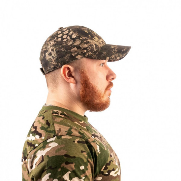 Бейсболка с козырьком для защиты от солнца, изготовлена из смесовой ткани. Размер бейсболки регулируется велкро-липучкой, расположенной сзади. Камуфлированная тактическая бейсбола дающяя хорошую маскировку на фоне растительной и пустынной местности. Хорошо подходит для использования в летнее время года.