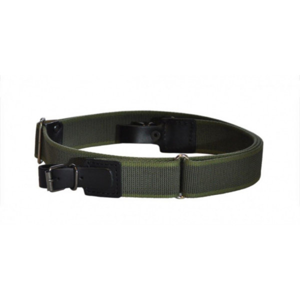 Ремень для ружья, выполненный из плотной хлопчатобумажной ленты, имеющей противоскользящее плетение с обеих сторон. Крепится к антабкам при помощи кожаных ремешков и металлических пряжек. Торцы кожаных деталей обработаны по специальной технологии защиты от влаги. Ремень регулируется по длине.
