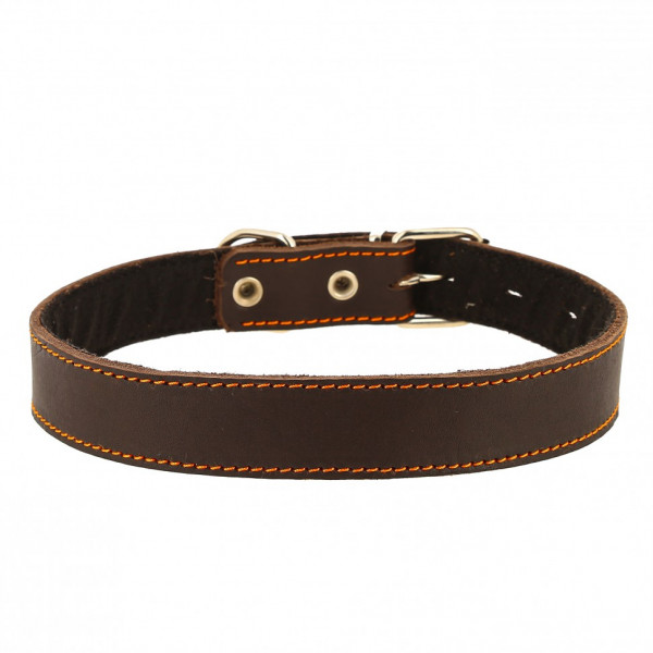 Классический ошейник с подкладкой из синтепона изготовлен из натуральной высококачественной кожи с использованием крепкой металлической фурнитуры.