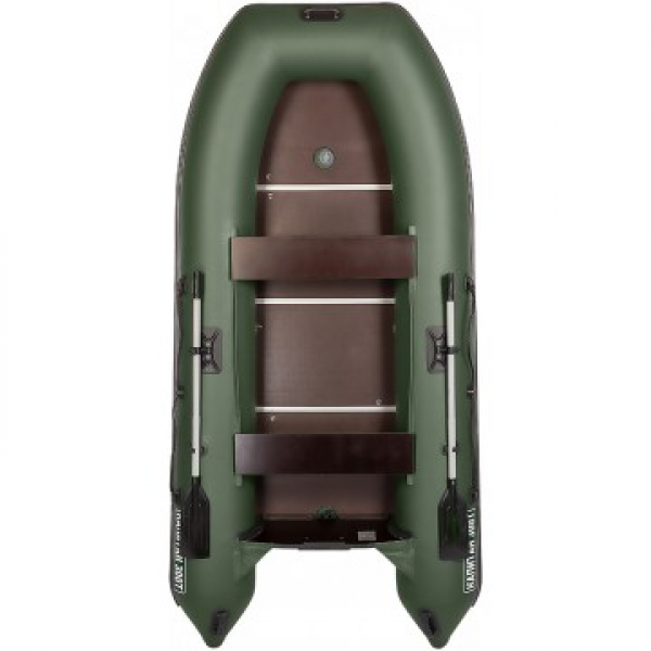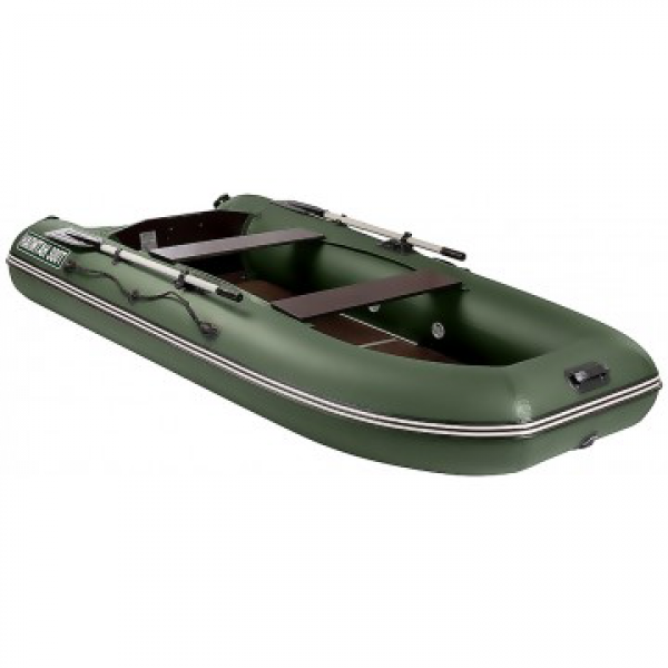 Пол толщиной 9 мм, изготовленный из водостойкой фанеры с противоскользящим покрытием, позволяет уверенно перемещаться в лодке и рыбачить стоя. Сливной клапан для удаления воды во время движения лодки под мотором существенно повышает комфортабельность при эксплуатации. Крепление сидений ликтрос–ликпаз позволяет регулировать банку в большом диапазоне, что обеспечивает удобство размещения людей и груза в лодке. Лодка оснащена ребордой (привальным брусом), защищающим боковую часть бортов при швартовке. Для защиты днища по линии киля и нижней части баллонов установлен специальный ПВХ-профиль. По бортам и на носу лодки размещены удобные ручки для ее переноски. Высококачественные клапана (BRAVO) позволяют быстро надуть/ сдуть лодку и являются надежной защитой от стравливания воздуха. В сложенном состоянии лодка перевозится в одной упаковочной сумке.